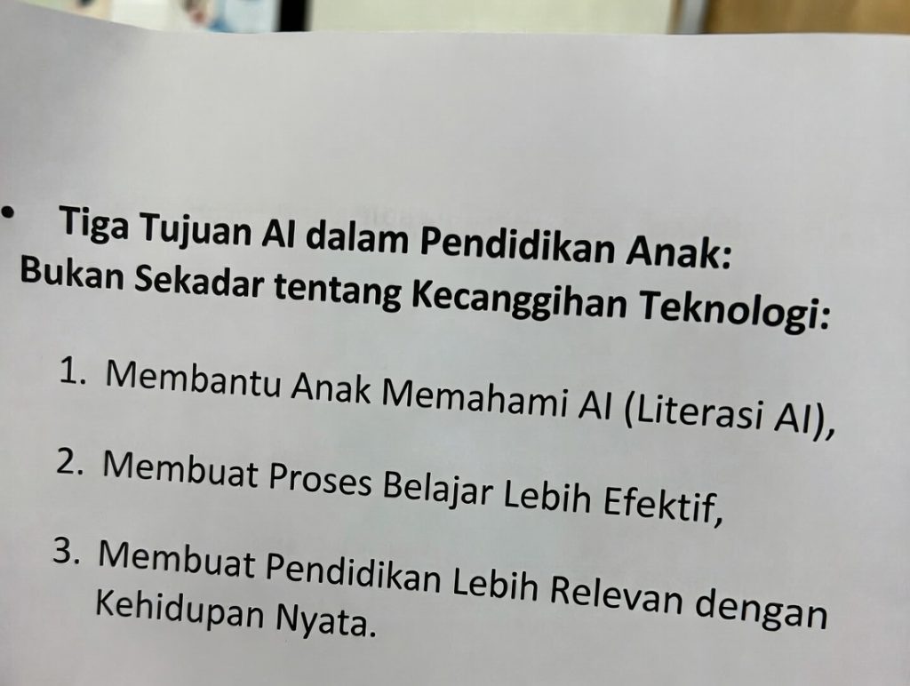 melainkan: “Sistem belajar seperti apa yang ingin kita bangun untuk anak?” Ketika pertanyaan ini dijawab dengan jernih, barulah teknologi – termasuk AI – bisa ditempatkan secara tepat, manusiawi, dan bermakna.