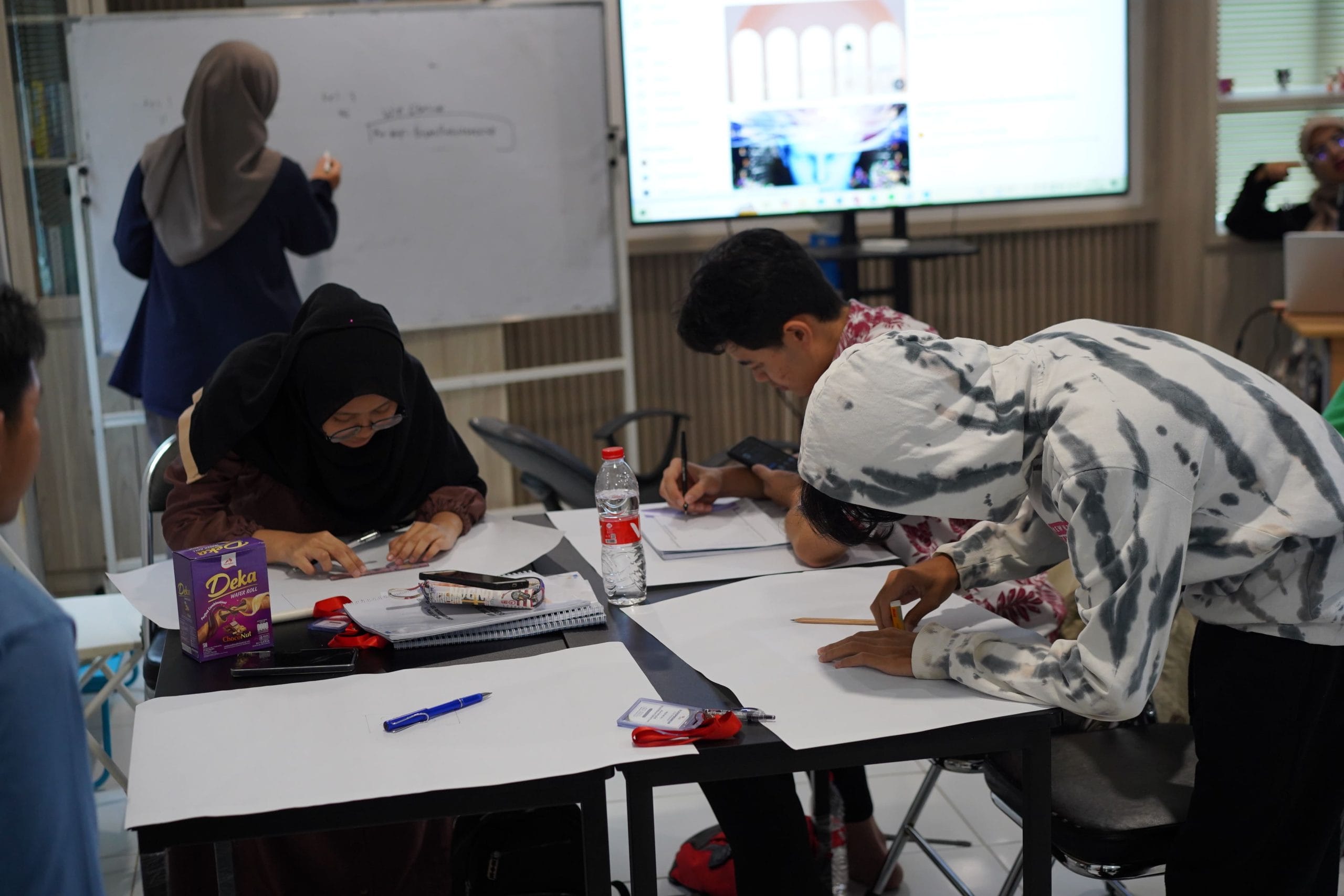 Ali dan kelompoknya mencetuskan berbagai ide: membuat video motivasi belajar, menciptakan ruang belajar santai, membuat panduan belajar sesuai tipe belajar (visual, audio, kinestetik), dll.